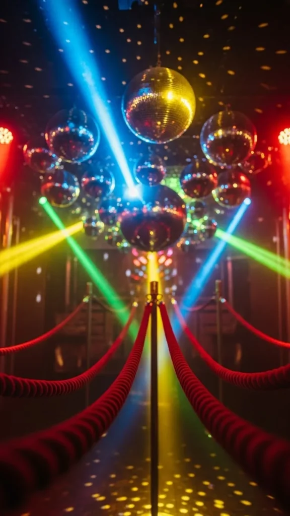 8. Velvet Ropes Paired With Hanging Disco Balls