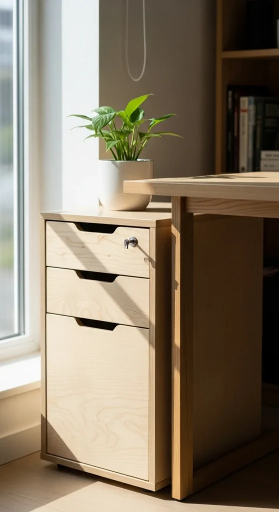 Compact drawers help keep small supplies out of sight. Choose drawers that fit under your desk or sit on top without taking too much space. Keep only what you use daily: sticky notes, chargers, stationery, or documents. Add small dividers to the inside so tools don’t mix. Label the drawers if you store similar items. Affordable plastic or bamboo drawers work just as well as expensive ones. If you enjoy DIY projects, repurpose an old makeup organizer for stationery. When supplies stay organized, your mind feels clearer when you sit down to work. Drawers help everything stay where it belongs without clutter.
