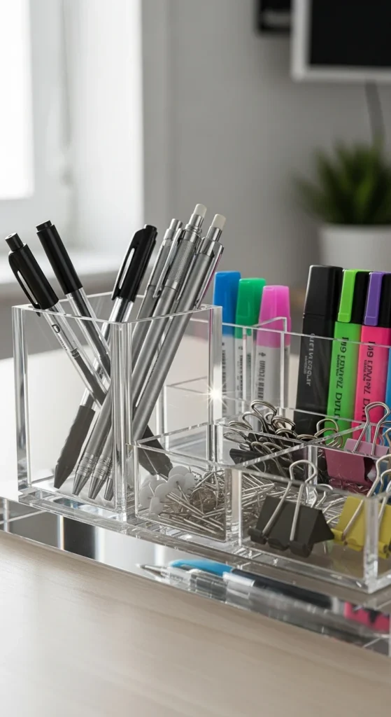 16. Glass or Acrylic Desk Organizer