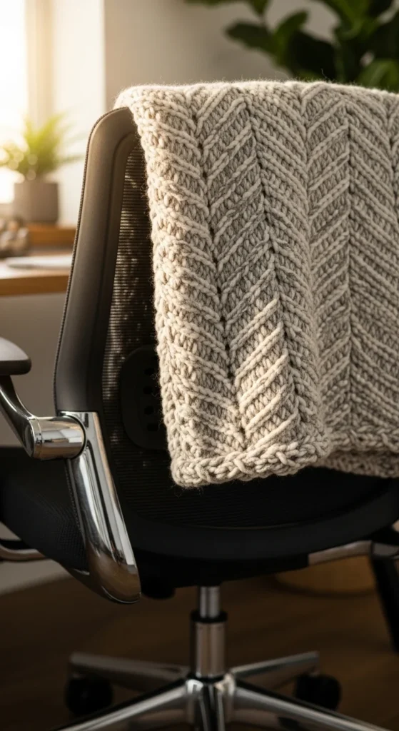 A throw blanket adds comfort and softness to your office chair. Choose a lightweight fabric so it doesn’t feel bulky. Neutral tones or gentle patterns blend easily with most spaces. On cold days, wrap it around your legs to stay warm without turning up the heater. Fold it neatly when not in use to keep the area clean. If you enjoy handmade items, knit a simple throw or crochet a small one for the chair. A throw adds texture and warmth to the room, making the chair feel more inviting.