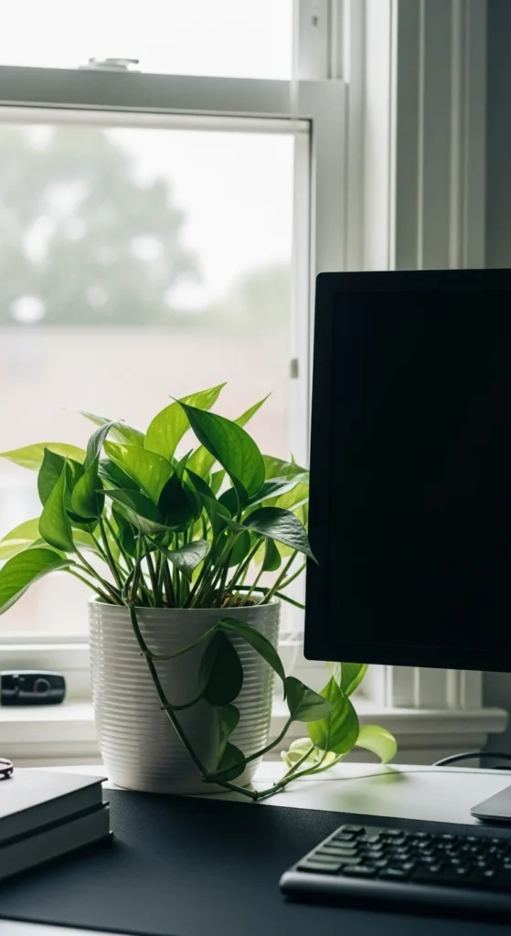 Plants bring life and a sense of calm into your workspace. Even one simple plant can soften the environment. Choose plants that require little attention, such as pothos, ZZ plants, or snake plants. Place them where they get indirect light. If your desk is small, pick a tiny succulent or a small trailing plant that sits on a shelf. A basic clay pot works well and costs very little. If you enjoy DIY touches, wrap the pot with jute rope or paint a simple pattern. Watering once a week is usually enough for easy-care plants. If real plants feel overwhelming, try one high-quality faux option. It still adds texture and color without any care habits. Greenery helps break the monotony of screens and paperwork, making your workspace more pleasant to sit in every day.