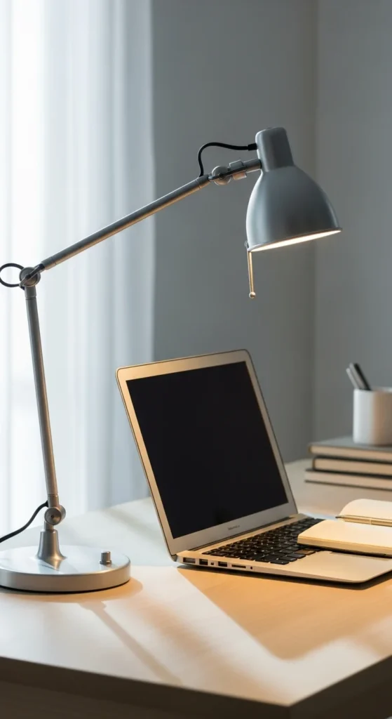 An adjustable desk lamp lets you control where the light falls. Choose a metal or matte-finished lamp for a clean look. A flexible arm helps you direct light toward your keyboard or notebook without causing glare on your screen. If you write frequently, angled light helps keep pages clear. Look for lamps with warm LED bulbs. Many affordable lamps offer brightness settings so you can adjust them based on the time of day. Place the lamp on the side opposite your dominant hand to avoid shadows. You can also pair it with a small clip-on light for detailed tasks. A good lamp makes late-night work more comfortable without overwhelming the room.