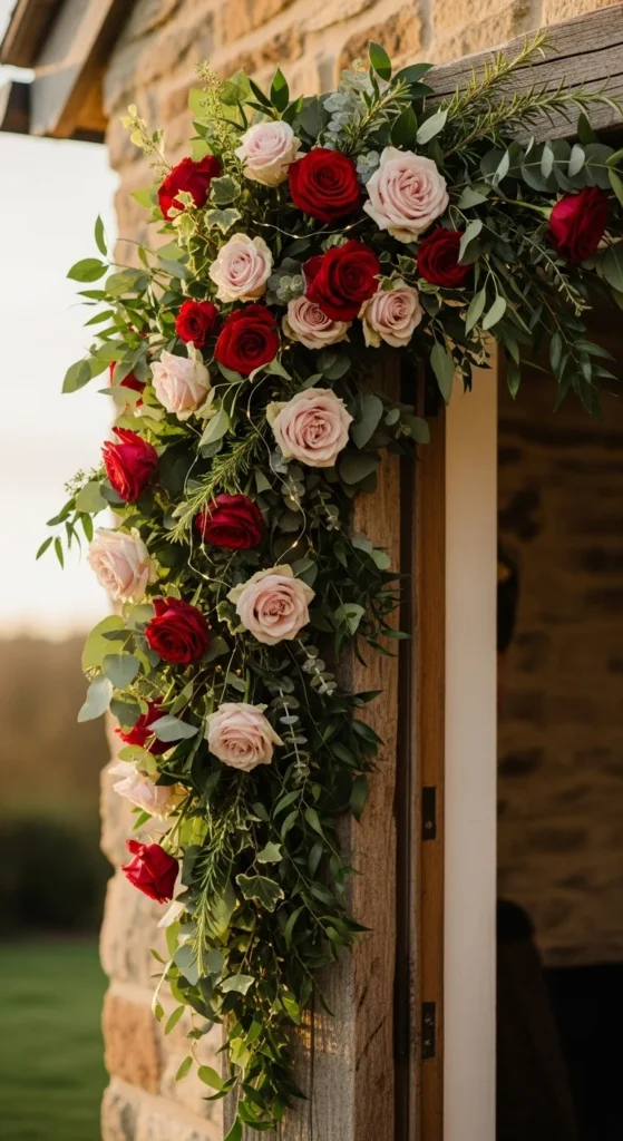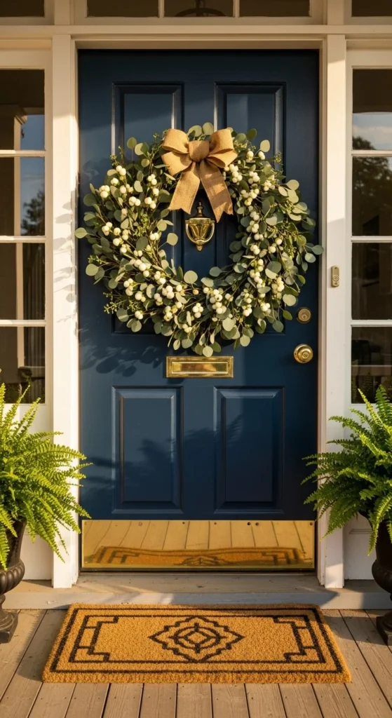 Go beyond wreaths by framing your doorway with garlands. Fresh or faux flowers, eucalyptus, and fairy lights make it pop. It’s especially stunning for spring or special occasions. This idea adds height and texture, creating an entry that feels alive and cheerful.