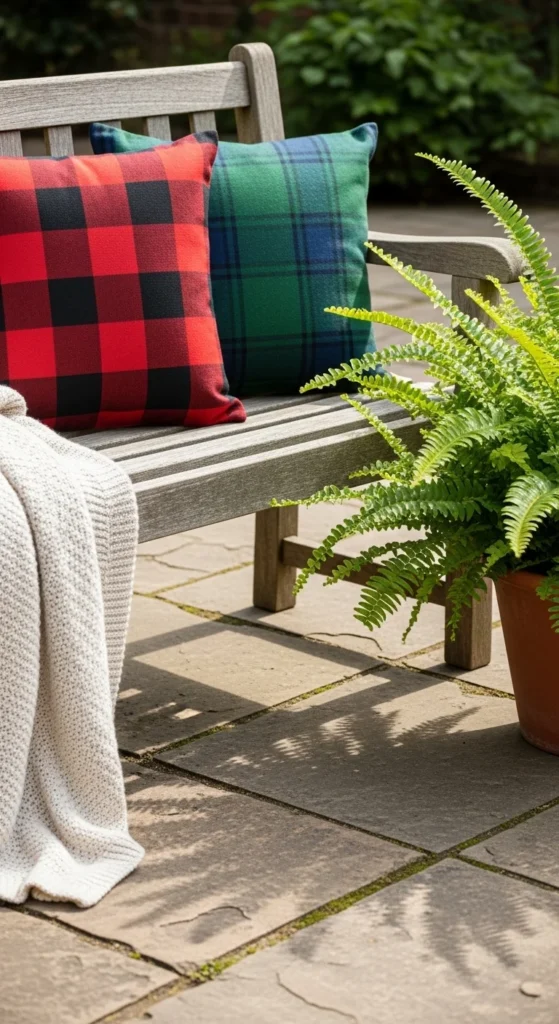 Even a small porch can fit a comfy chair or bench. Choose durable outdoor furniture and layer it with cushions or throws. Neutral fabrics work best year-round, while colorful pillows can be swapped with the seasons. Add a small side table for coffee or decor—it makes the space both functional and welcoming.