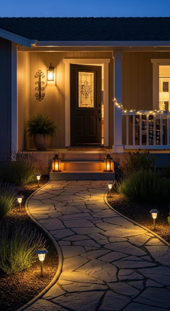 Guide your guests to the door with pathway lights. Solar stake lights or low-voltage fixtures work well. Add small lanterns or fairy lights for extra charm. Good lighting not only looks inviting but also improves safety after dark.