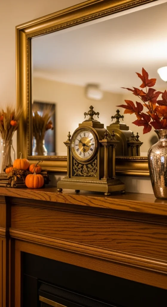 A vintage clock adds charm and character. Place it at the center of the mantel and build small decorations around it. Keep the look simple so the clock stands out. Use greenery, candles, or small wooden objects to soften the display. Thrift stores often have inexpensive clocks that can be cleaned or painted to match your décor.