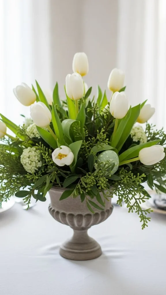2. White Tulip and Greenery Centerpiece