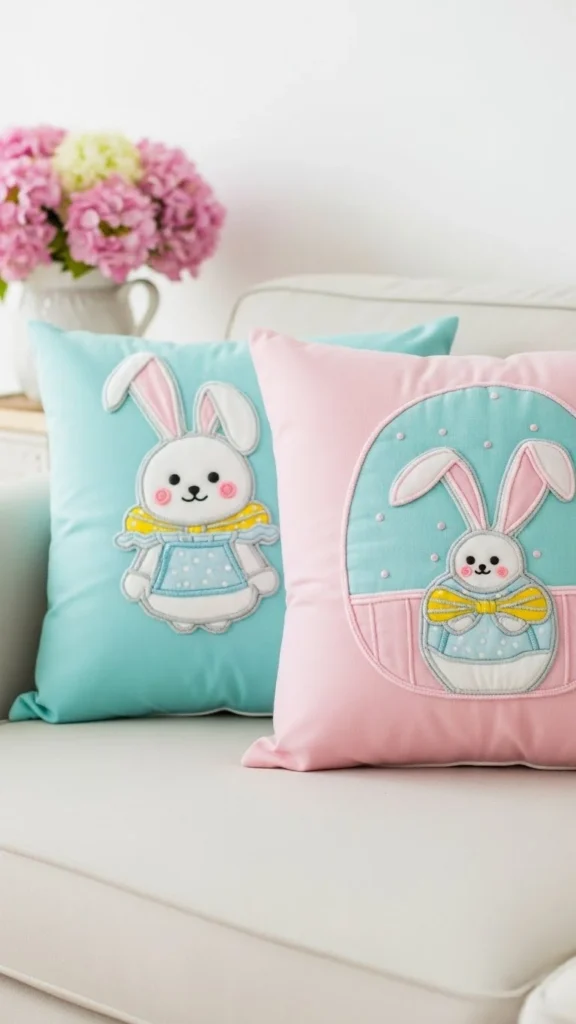 Cushion covers in pastel tones can change a room quickly. Choose shades like pale blue, blush, or light sage. Keep the fabric simple. Cotton and linen blends look best for a clean style. You do not need many. Two covers on a sofa or chair can set the tone. Use the inserts you already own. Store the covers after Easter and bring them back next spring. This is a smart, low-cost way to update decor without clutter.
