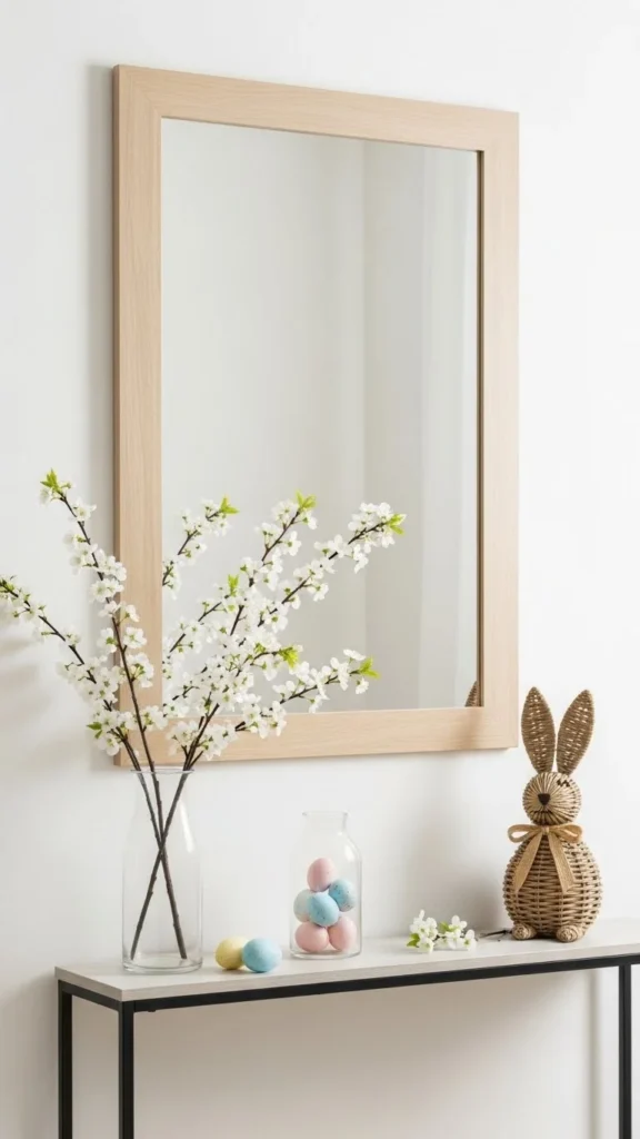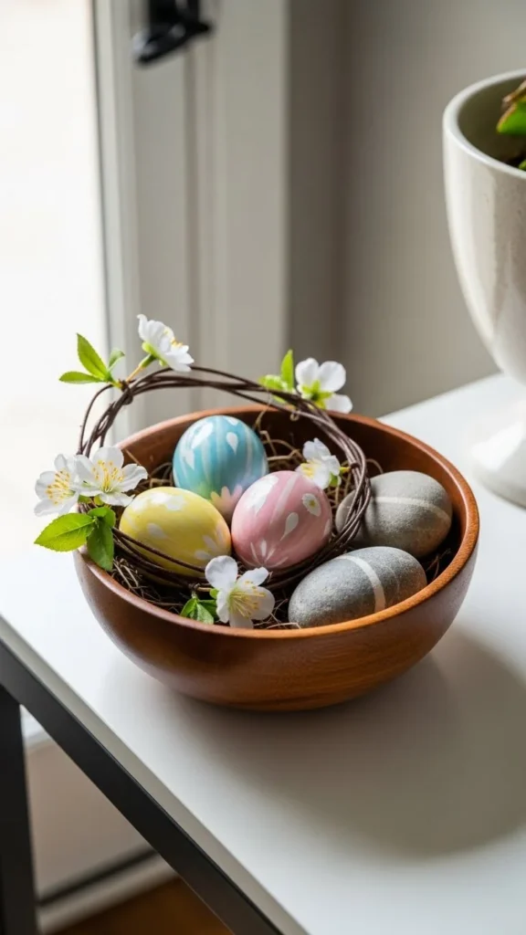 An entryway bowl is a simple way to add a festive touch with zero clutter. Choose one bowl and fill it with seasonal items like painted eggs, wrapped sweets, or flowers. Keep the colors soft so it looks calm.