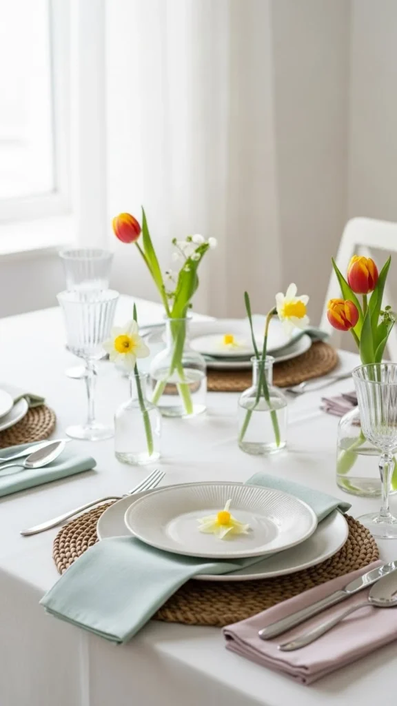 Using pale plates and bowls makes the table look seasonal without extra decor. White, cream, and soft pastel dishes work well. Even if your plates don’t match perfectly, keeping them in one color family makes the setup look planned.