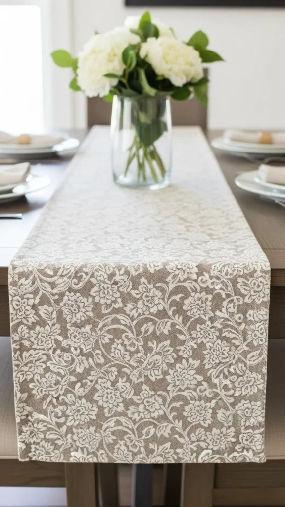 A runner adds style without covering the whole table. It also helps the dining area look festive while staying practical for meals. Choose cotton or linen in a light shade like cream, sand, or pale gray. If you don’t want to buy one, a long scarf can work. Iron it so it lies flat, because wrinkles can make the setup look messy.