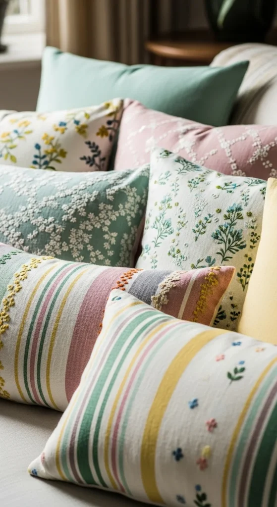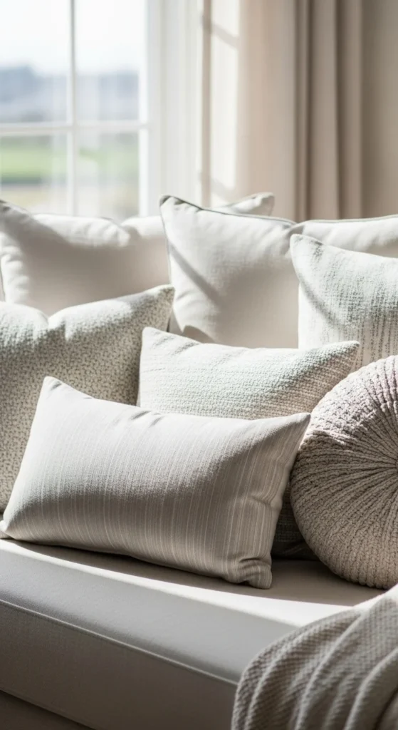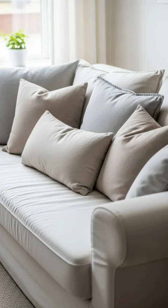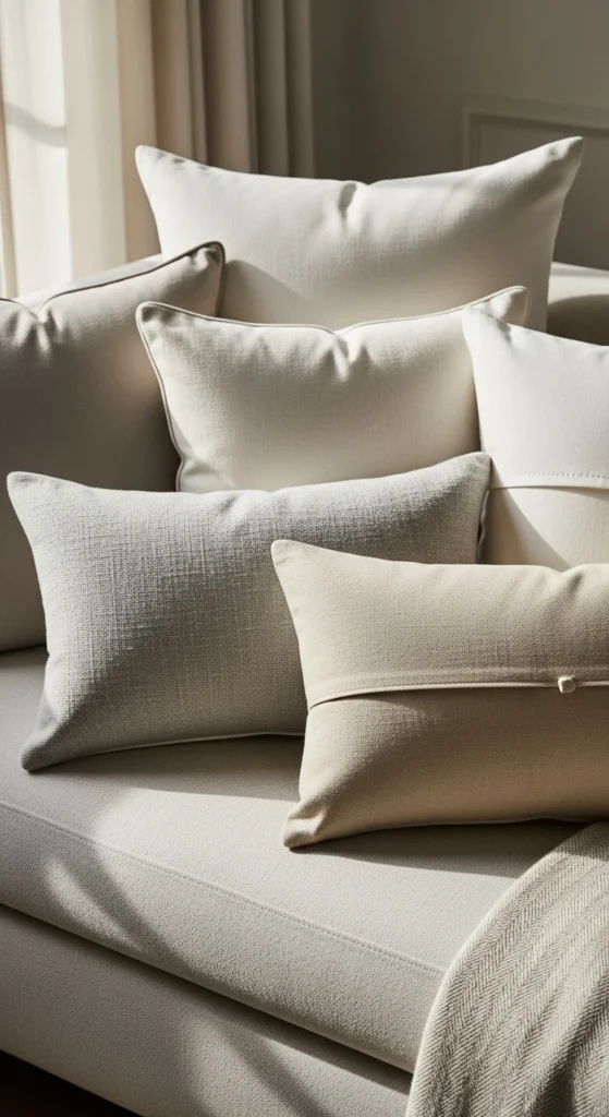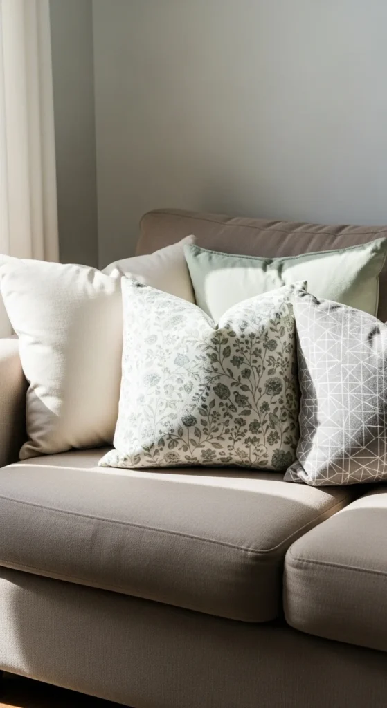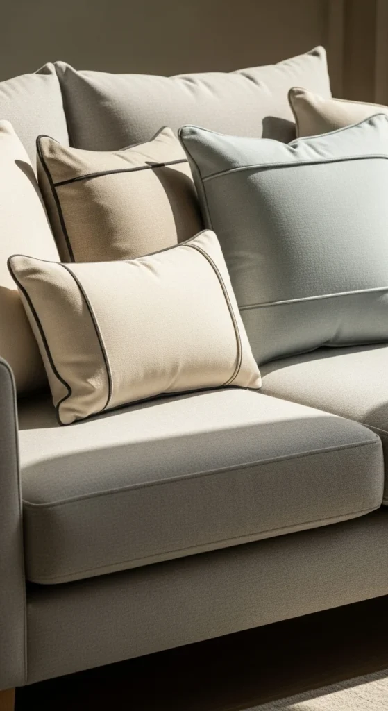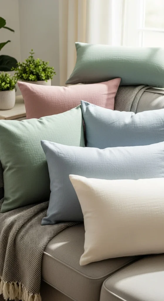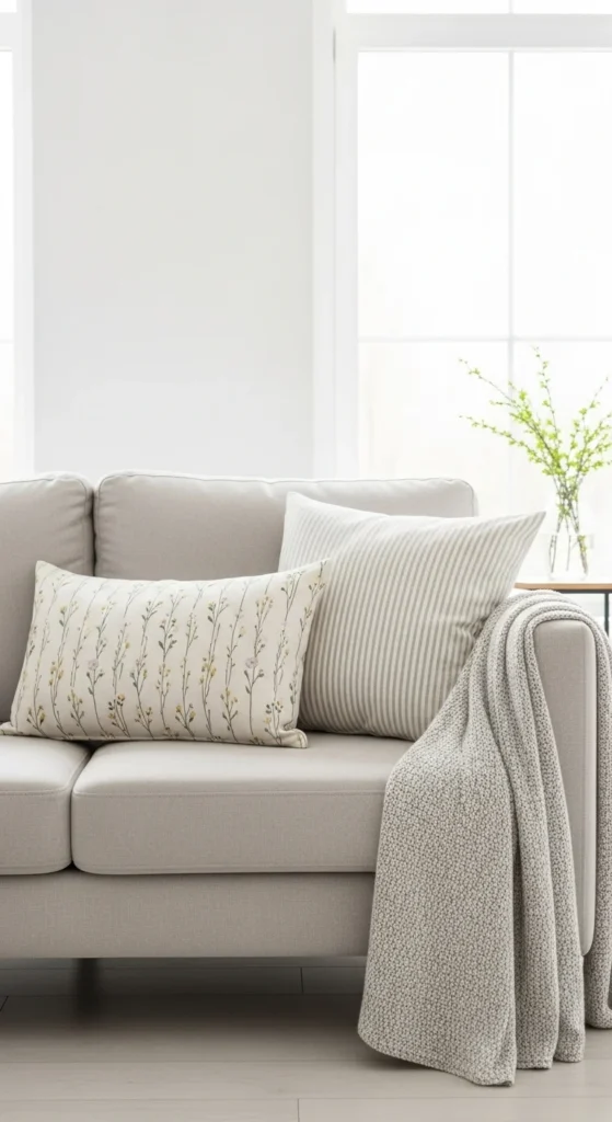 Add one soft color like sage or pale blue. Keep the rest neutral. This creates interest without clutter. Swap accent covers later when the season shifts.