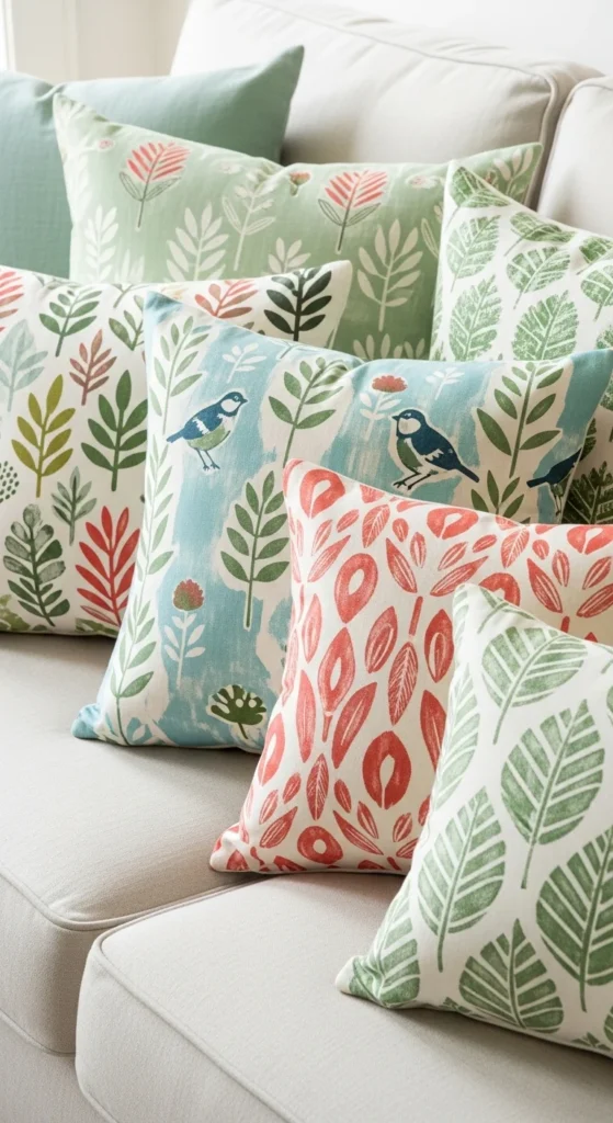 Limit patterns to one or two pillows. Keep prints soft and simple. Florals or sketches work well when muted. Pair with solid pillows for balance.
