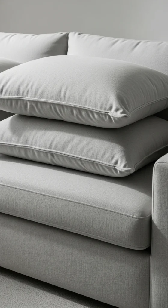 Remove extra pillows. Leave space. This makes sofas easier to use and keeps the room feeling open.