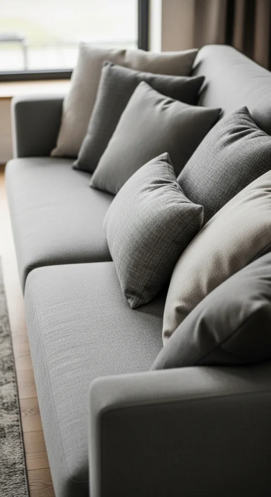Use a mix of sizes. Large pillows anchor the corners. Smaller ones sit forward. This creates depth without adding more items.