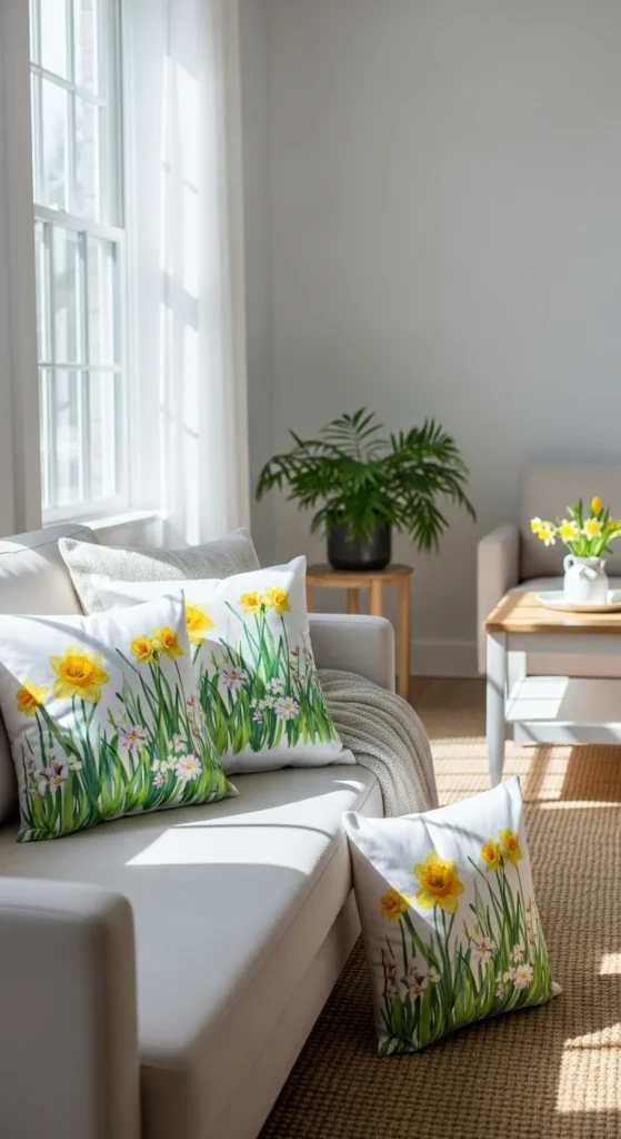 Spring pillow updates work best when they stay simple. Lighter fabrics, fewer pieces, and relaxed layouts can change how a sofa feels in minutes. Try one idea at a time. Store what you remove and rotate later. Small shifts go a long way when pillows do the work.