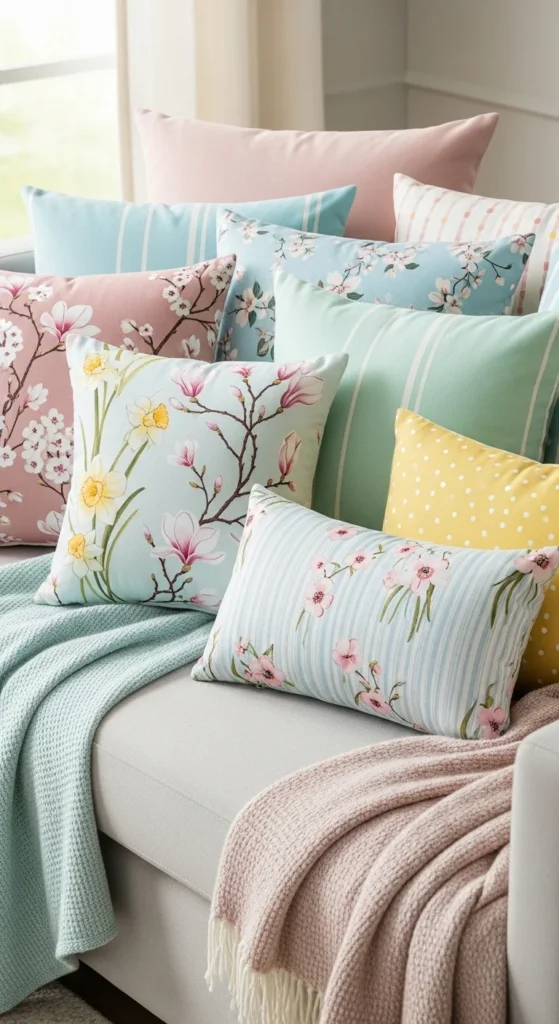 Spring is the easiest time to change how a sofa feels without buying new furniture. Pillows do most of the work. A few fabric swaps, lighter colors, and simple arrangements can shift a room from heavy to relaxed in minutes. This list focuses on spring pillow decor ideas that make sofas feel lighter and more inviting, using affordable covers, easy DIY updates, and styling tricks that work in real homes. Each idea is meant to be practical, flexible, and easy to undo later.