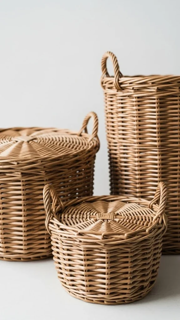 Use baskets to hold blankets or prayer mats. They keep the room tidy.