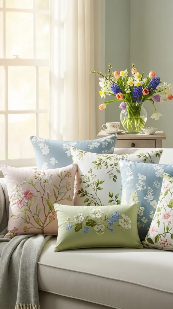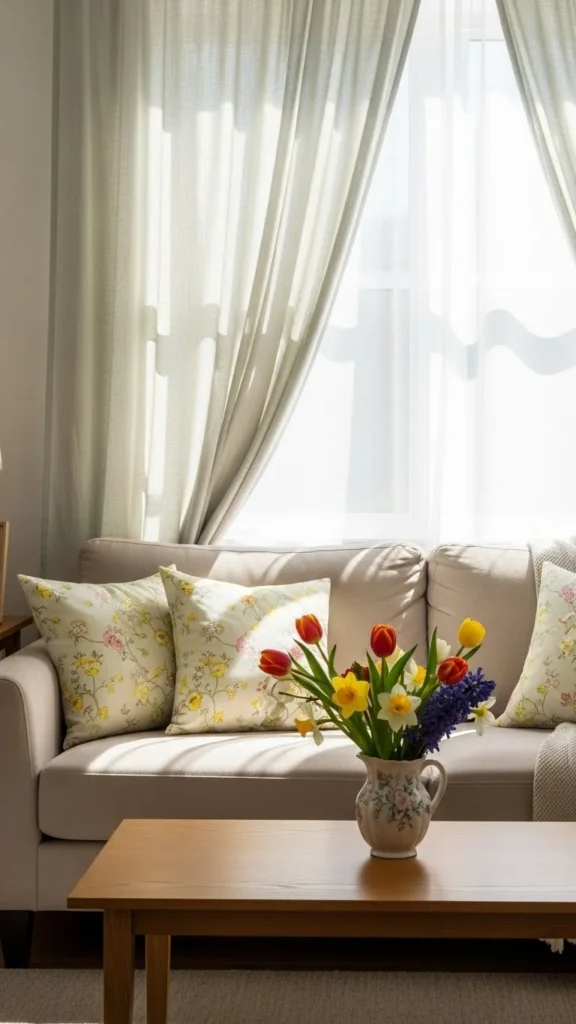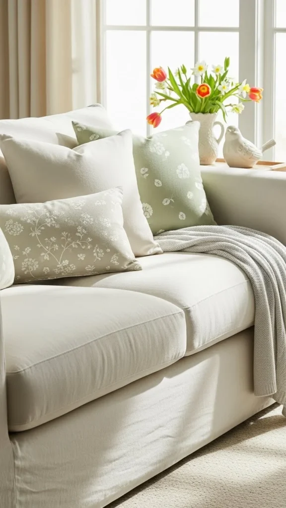 Throw pillows are one of the easiest ways to change how a room looks. Soft floral prints bring in a spring vibe without being loud. You do not have to buy new pillows. Use the inserts you already have and swap out the covers. Many budget shops and online stores sell covers at low prices. Pick small patterns in gentle colors. This keeps the look calm and easy to live with. Place two or three pillows on the sofa or bed. Mix them with plain ones for balance. When the season changes again, you can store these covers and bring them back next year. This makes them a smart buy that works again and again.