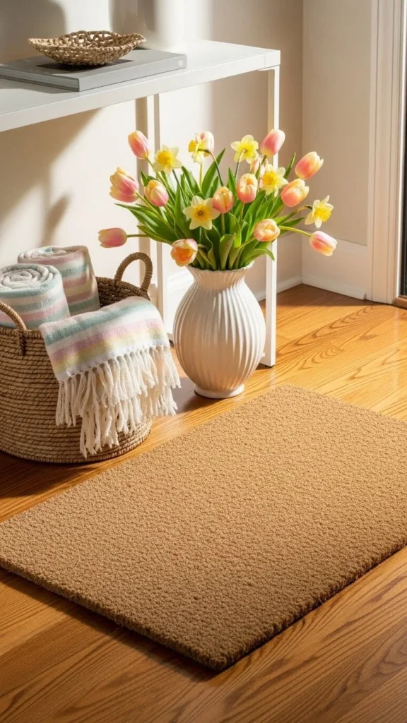 A light mat at the door makes the entry feel welcoming. Choose one that is easy to clean.