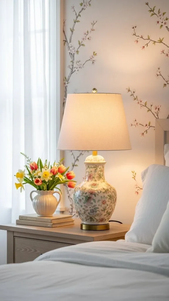Table lamps with pale bases and shades look good all season. They add gentle light and style.