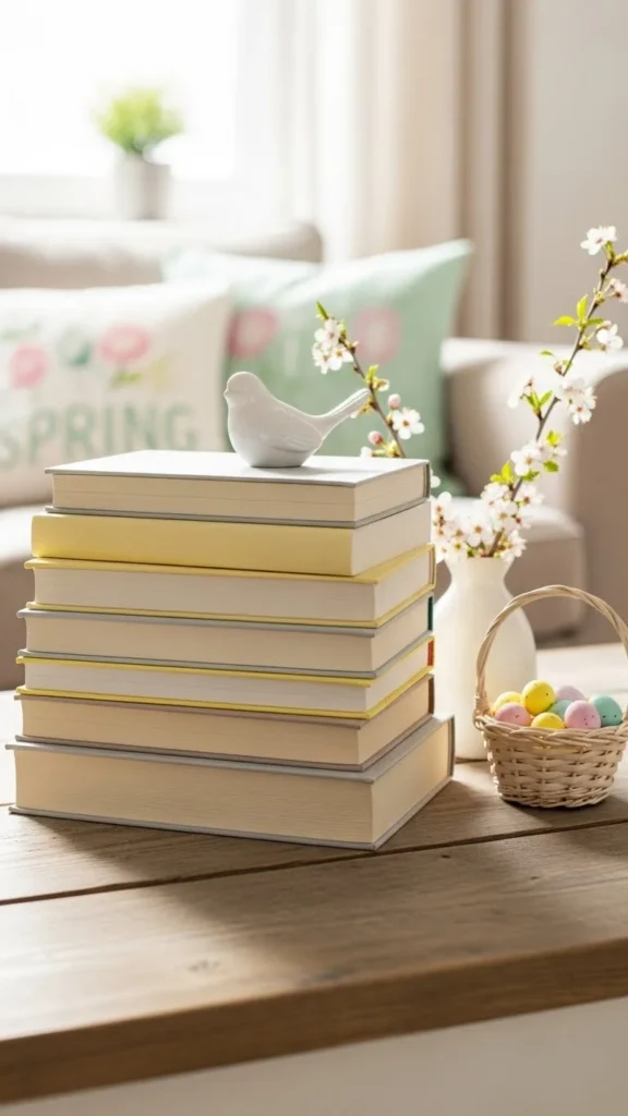 Choose books with pale covers. Stack them for a simple display.