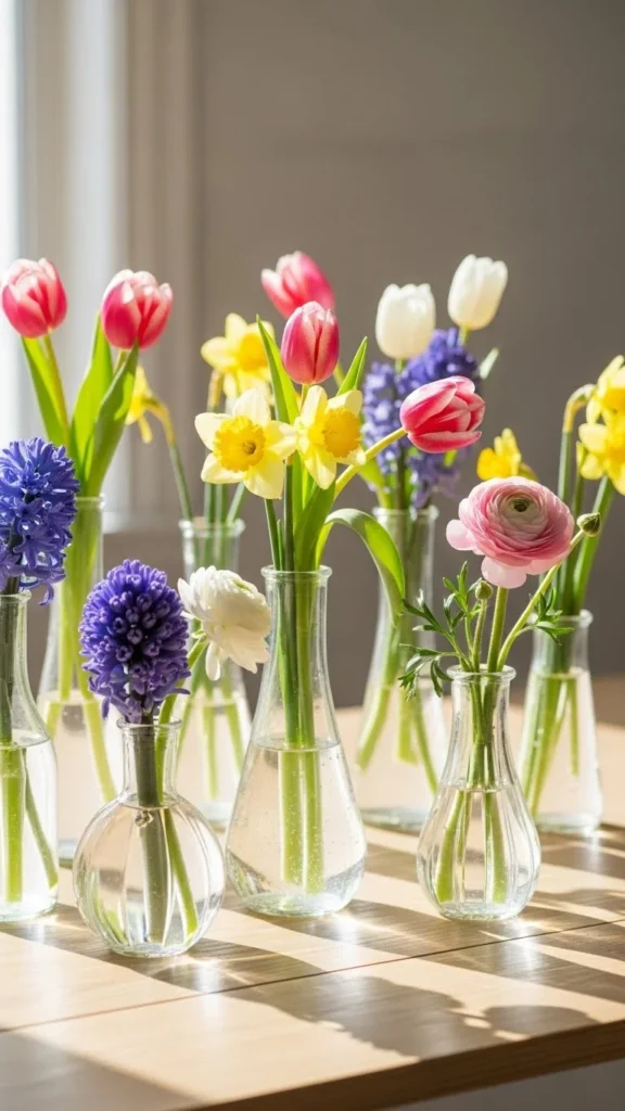 Clear glass vases add a clean look to any space. Fill them with flowers or simple branches. You do not need a matching set. Mixing different shapes adds charm. You can use jars from your kitchen too. This makes the look more personal and saves money. Place them on a table, shelf, or windowsill. When light hits the glass, it adds a soft glow. This small detail works well all season and into warmer months.