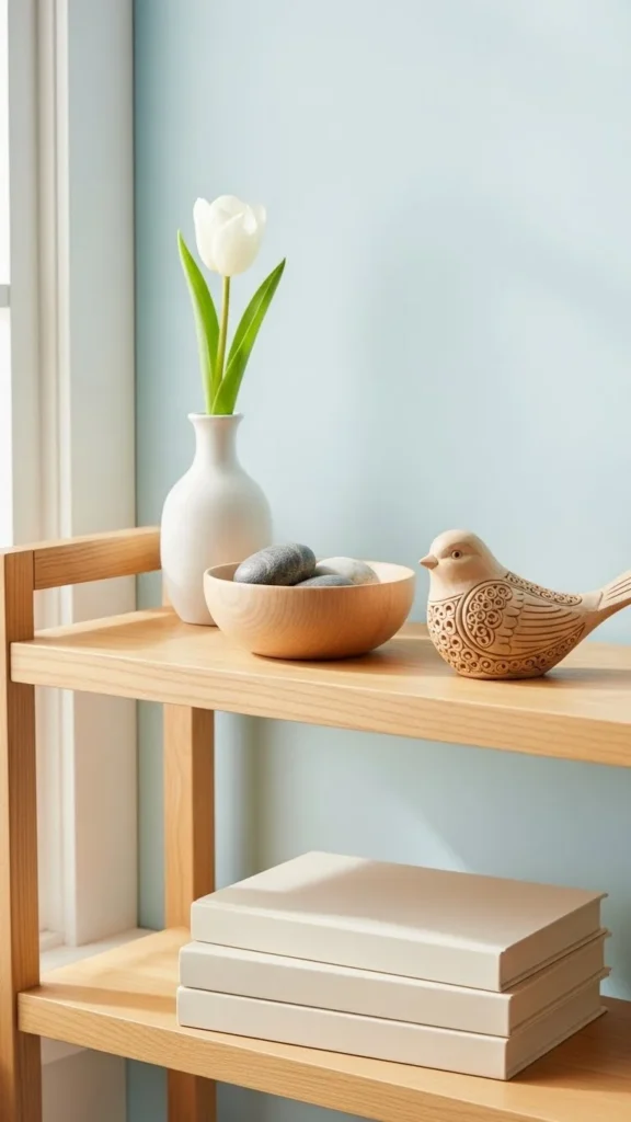 Small pastel items add color without being loud. Use bowls, candles, or small frames. Place them around the room for gentle pops of color.