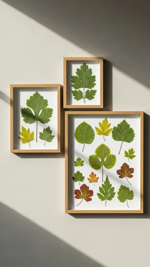 Pressed leaves bring outdoor detail indoors. Collect locally and press between books.