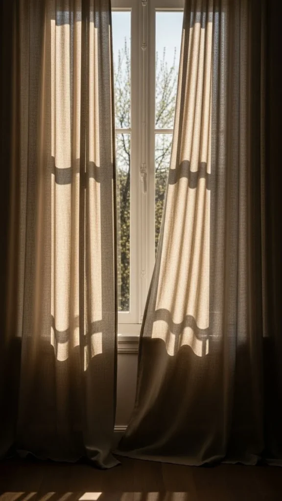 Linen curtains soften sunlight while allowing airflow. They feel relaxed and work well in living rooms and bedrooms.