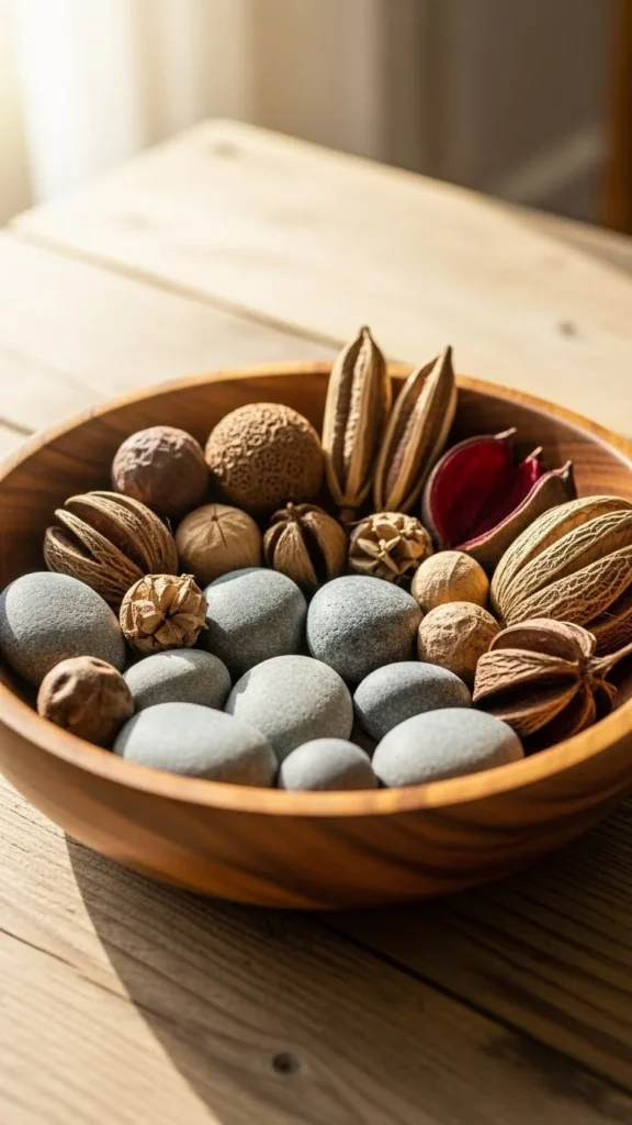 Reclaimed wood brings warmth and history into a room. Look for old boards, benches, stools, or tables made from salvaged wood. Surface marks and uneven edges add character rather than distraction.