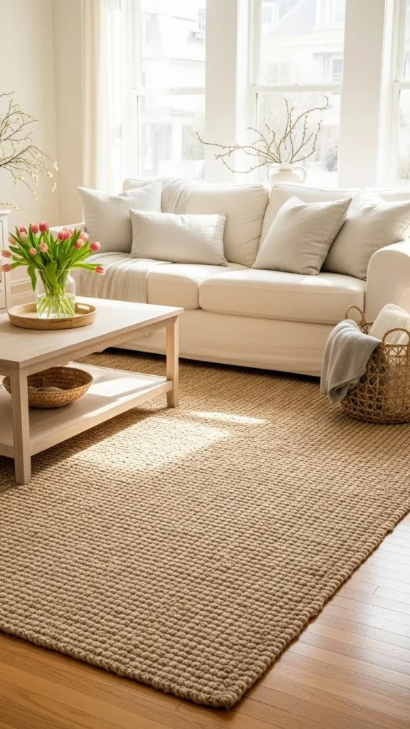 Natural fiber rugs ground a room visually. They work well in entryways and living spaces.