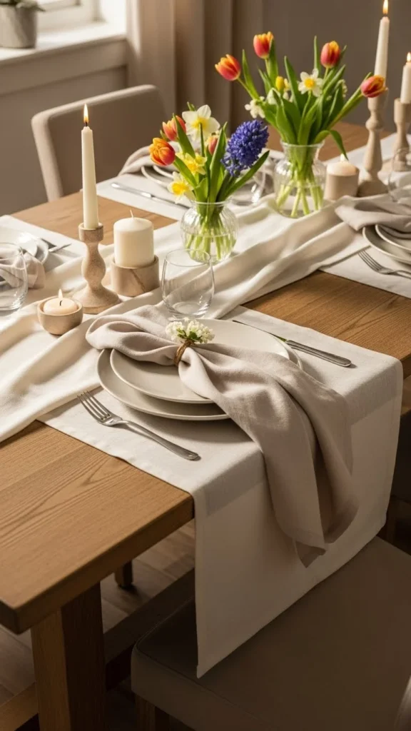 Cotton tablecloths and napkins feel soft and practical. Neutral tones suit many settings.