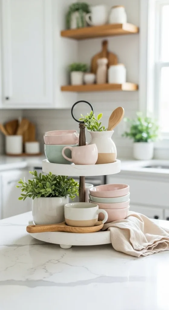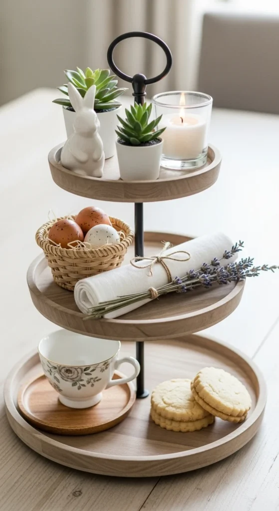 The best tiered trays stay practical. Leave room for daily use and avoid fragile setups.