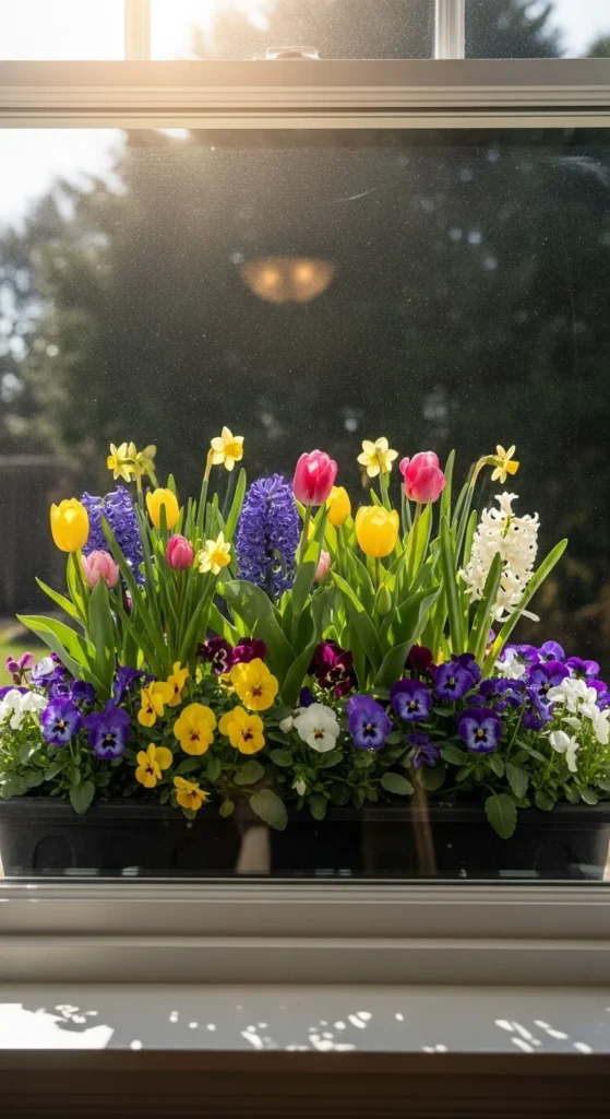 If possible, place planters outside below the window. This adds greenery without blocking interior light. Simple boxes with trailing plants work well.