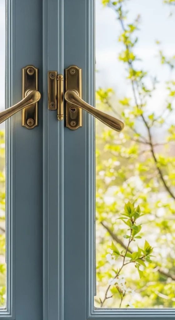 Swap dark hardware for lighter finishes. White, brushed brass, or pale wood blends into the background and keeps focus on daylight.