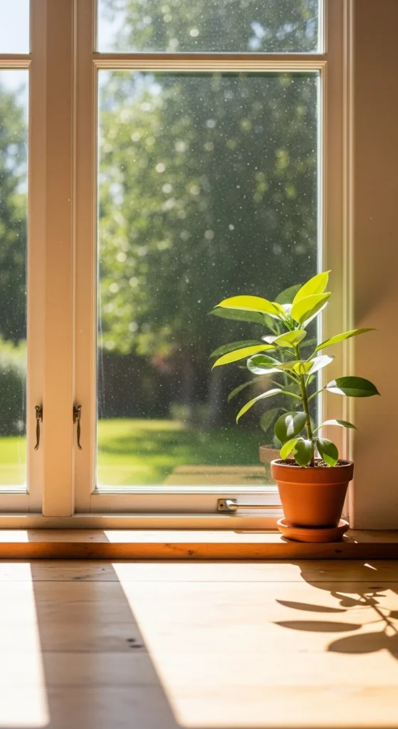 Sometimes decor is just maintenance. Clean glass lets more light through. Use vinegar and water for a low-cost solution. Wipe frames too.