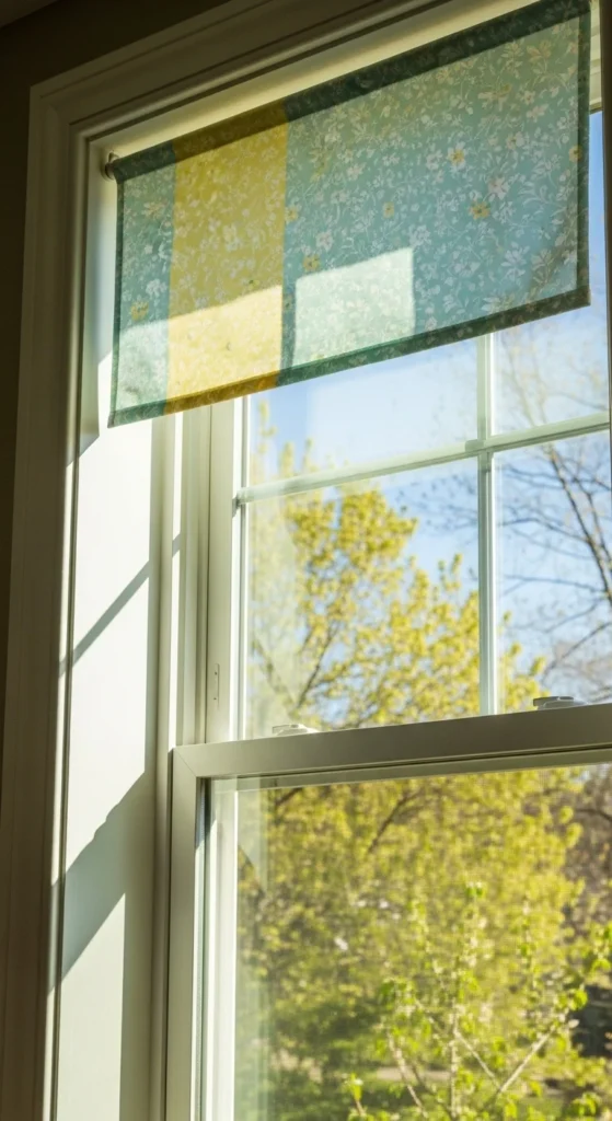 A slim valance adds softness without covering glass. Keep it shallow and plain. Mount it just above the frame. Make one using a straight strip of fabric and ironed pleats. Avoid heavy patterns so light stays the focus.