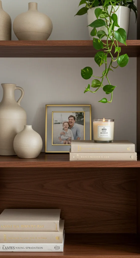 - Use vases, framed photos, candles, or small sculptures to add texture and interest.