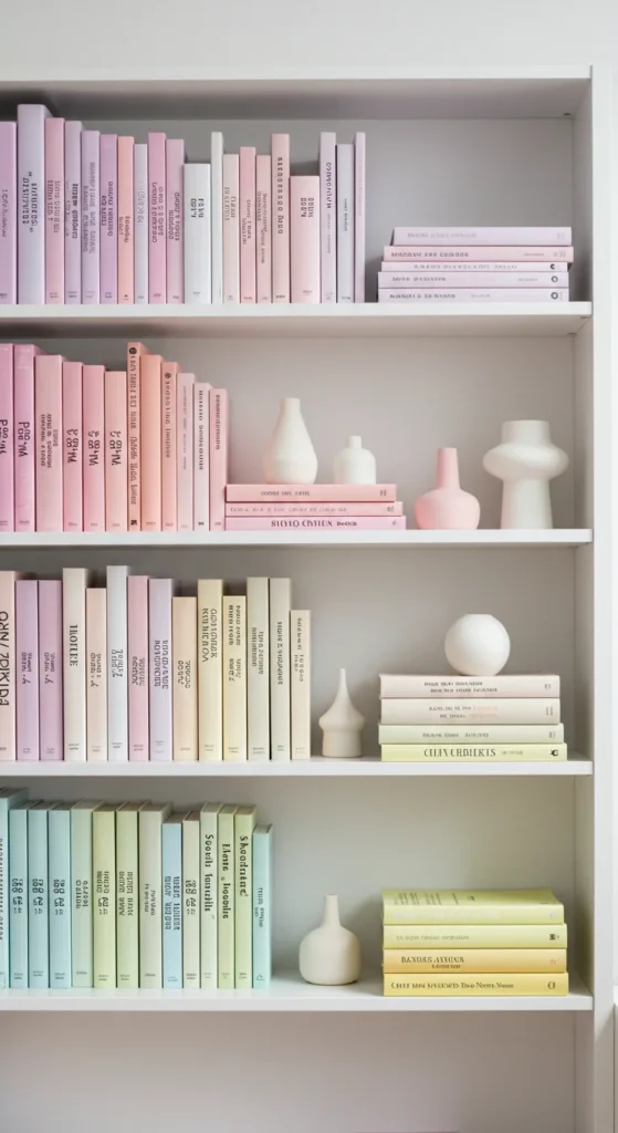 This approach keeps your shelves functional while turning your book collection into part of the decor.