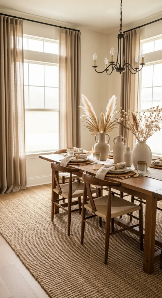 Even the smallest textures — like matte dinnerware or woven placemats — create tactile richness that feels inviting.
