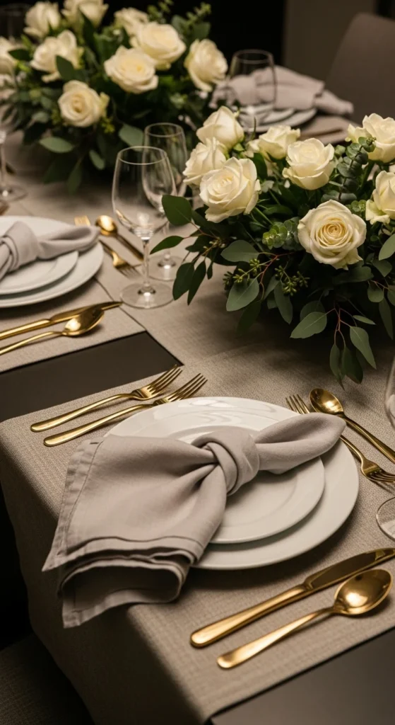 - A low arrangement of hydrangeas or roses for intimate dinners.