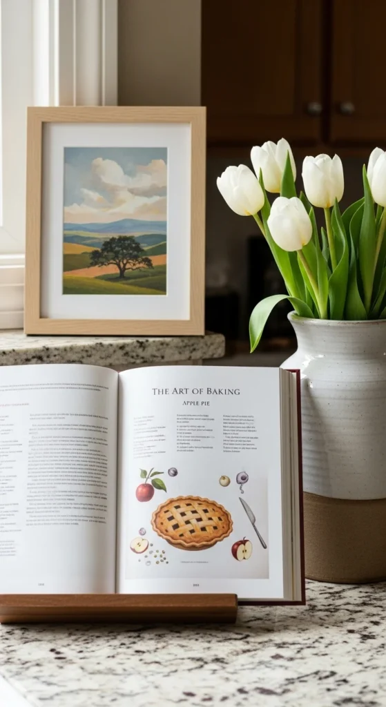 A little personality goes a long way in the kitchen. A framed print, a cookbook stand, or even a decorative bowl can elevate the space without taking over.