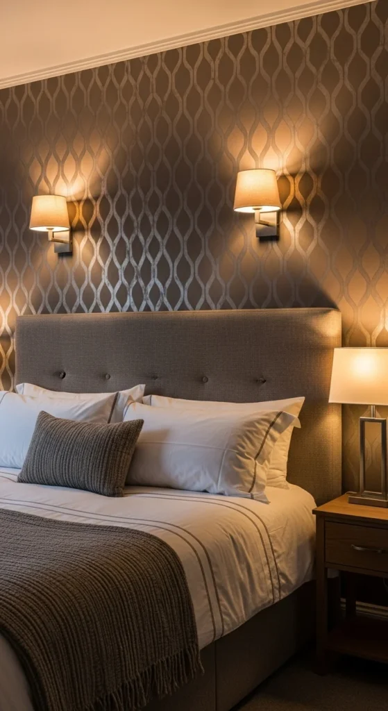If you have metallic or textured wallpaper, angle your lights slightly so they catch the surface and shimmer beautifully.