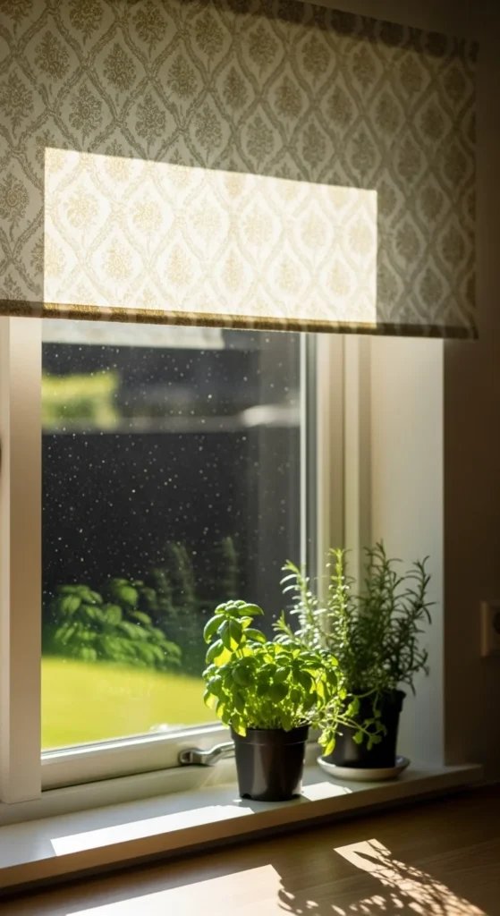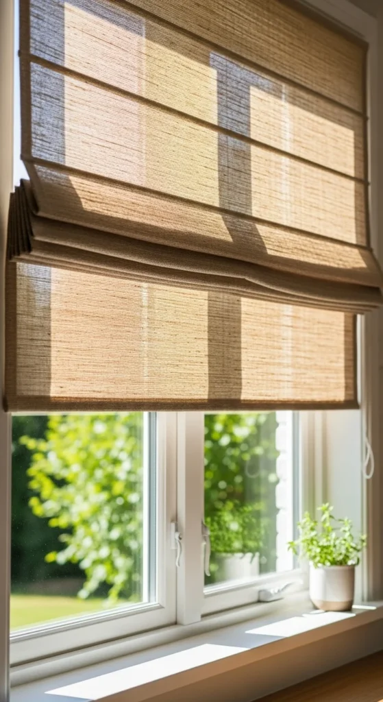 Roman shades bring softness without hanging fabric touching the floor. They suit kitchens, bathrooms, and small bedrooms. Choose neutral linen shades if you like a calm look. If you want something handmade, you can create a faux Roman shade using fabric glued to a tension rod—perfect for renters. Mount the shade slightly higher than the window frame to give the illusion of taller windows. If your window gets strong sunlight, pick a light-filtering option so your room stays comfortable during hot afternoons. Roman shades also pair well with curtains if you want extra depth. For a quick refresh, swap out old cords for cordless options that look cleaner and feel safer in homes with kids.