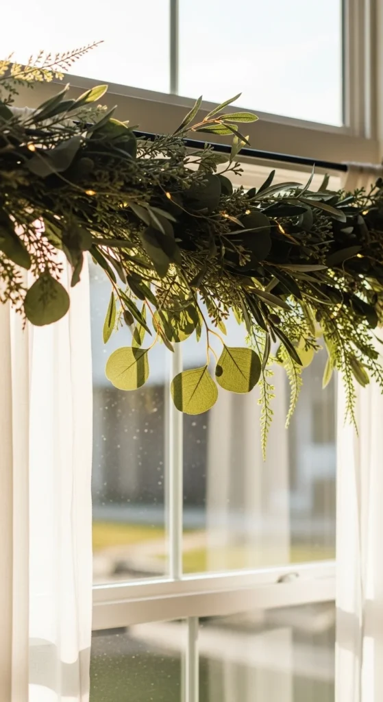 Garlands work year-round, not just for holidays. Choose faux greenery for easy upkeep. Drape it across the top of your window or let it hang along the sides. Secure it with small adhesive hooks. For a more relaxed feel, let some strands hang loosely. If you want a seasonal touch, mix in flowers or small décor pieces like wooden beads. This update costs very little and instantly adds charm. Use lightweight garlands to avoid pulling on hooks or rods.