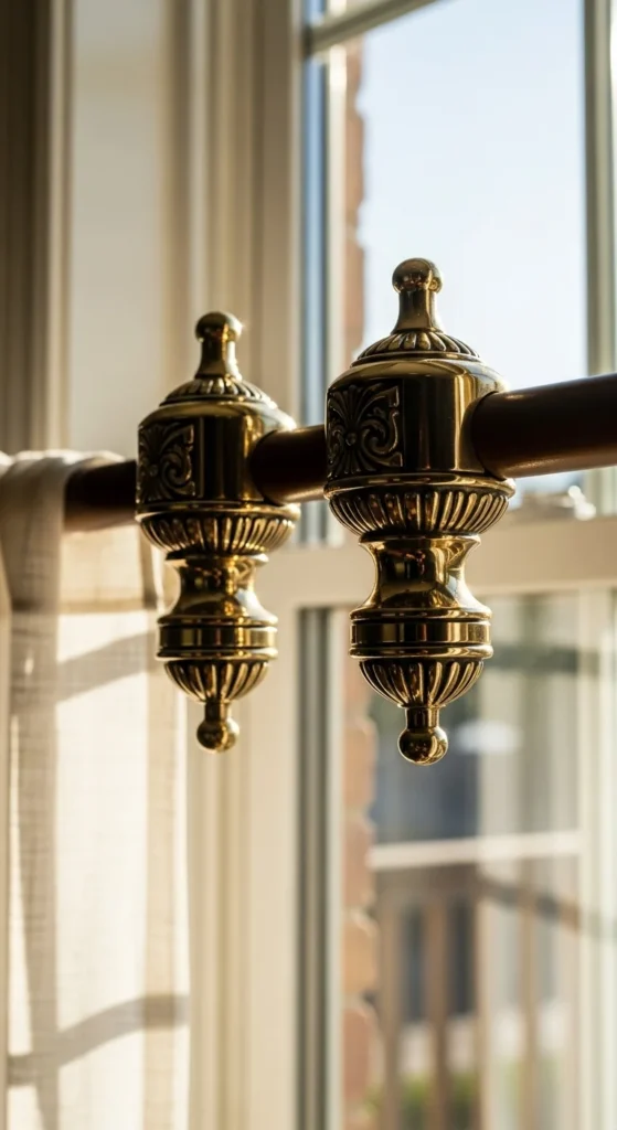Finials add small but meaningful style. Choose shapes like spheres, leaves, or crystals depending on your décor. They’re easy to swap when updating your room. For a thrifty option, spray-paint old finials using metallic paint. If your rod feels too plain, upgrading the finials instantly gives it a polished look. Pair darker rods with lighter curtains for contrast. Measure your rod before buying replacements so they fit properly.