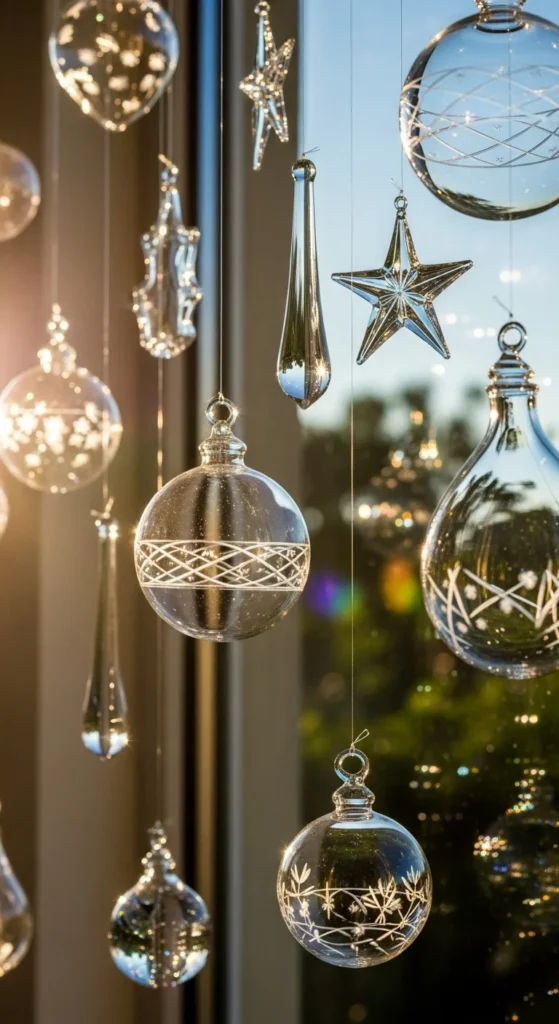 Ornaments add sparkle. Choose glass, wood, or metal pieces. Hang them at varying lengths using clear fishing line. Sun-catchers are especially pretty for east-facing windows. Avoid overcrowding—three to five pieces look balanced. If you want a low-cost solution, use old jewelry pendants or small craft items as ornaments. Clean them often so they shine clearly in the sunlight.