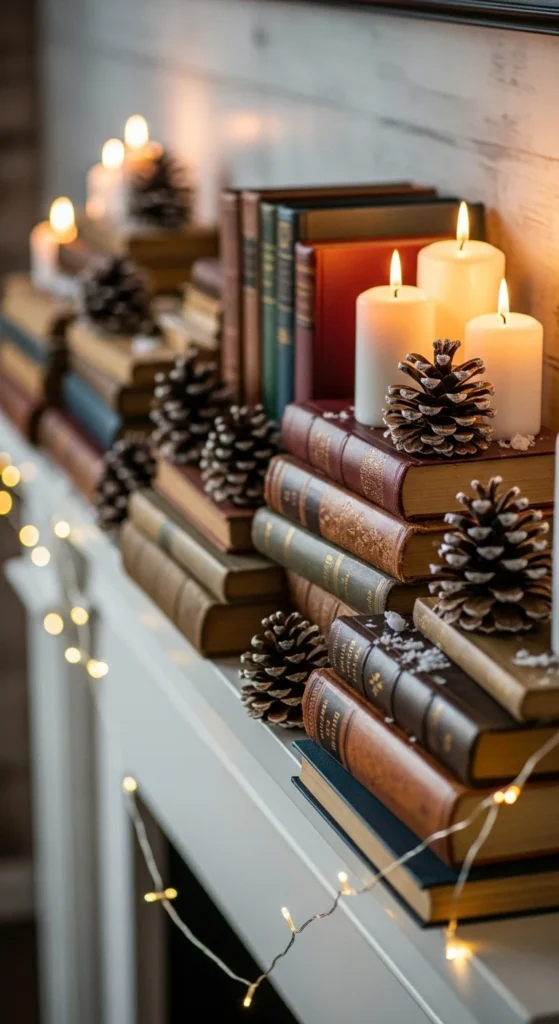 This idea is budget-friendly because you can use books you already own. Libraries or secondhand shops also offer piles for very low cost. Add a pinecone or small rock for a nature-inspired accent.