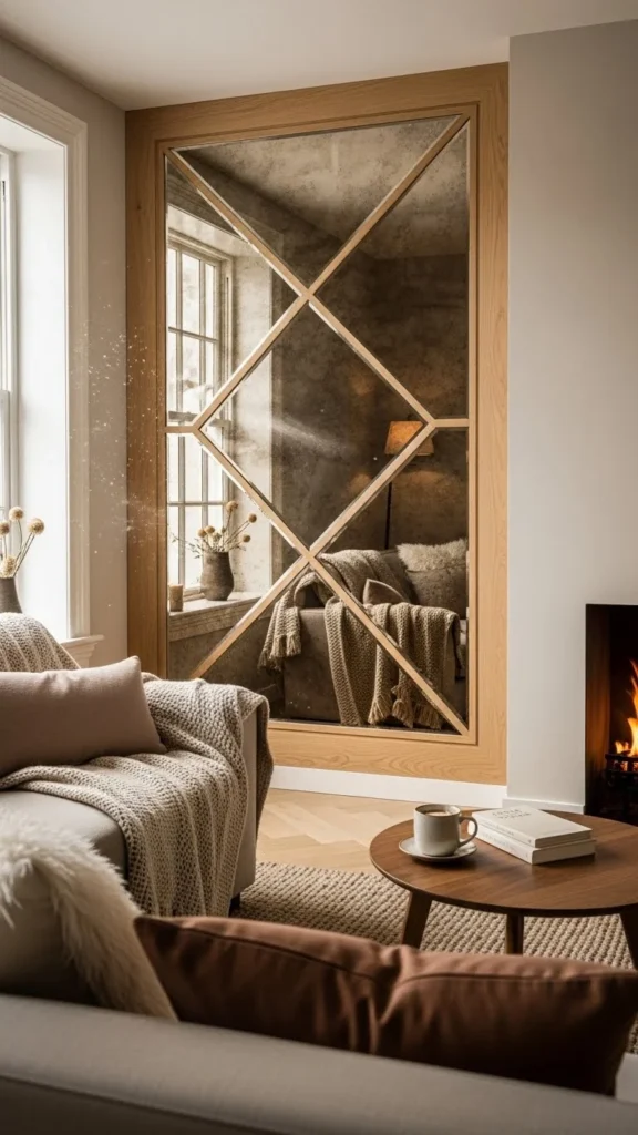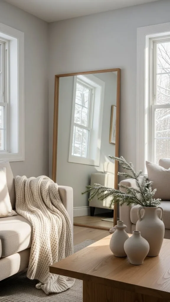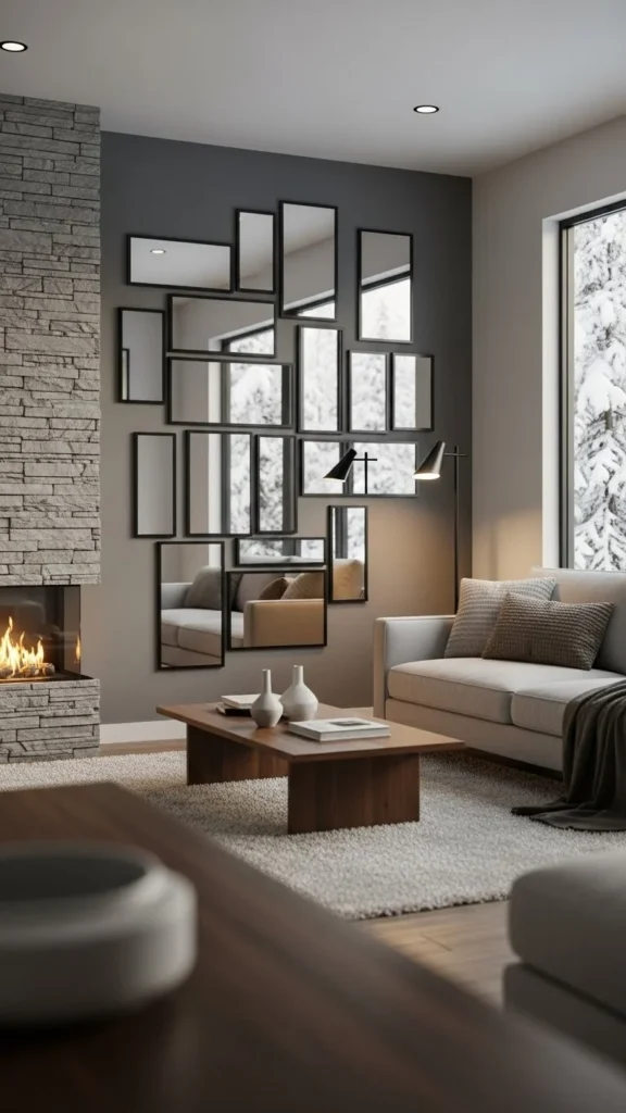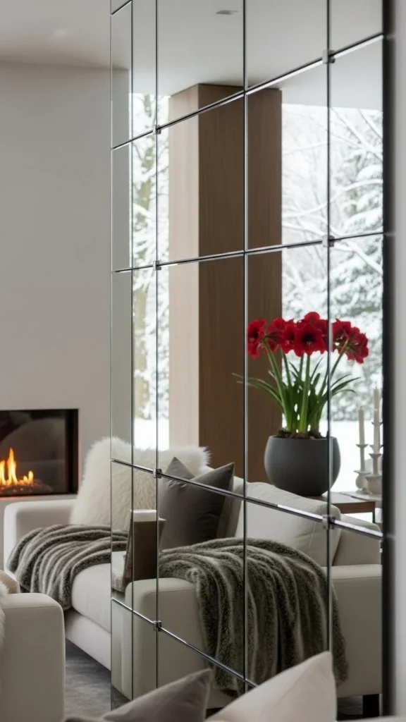 Reflective winter mirror-accent walls help interiors feel lighter, wider, and calmer when daylight is limited. From full-panel designs to grid layouts and framed arrangements, mirrors reshape how space is perceived without major changes. Many of these ideas rely on affordable materials and simple placement rather than custom work. Start with one wall, focus on light sources, and let reflections reshape your winter living space naturally.